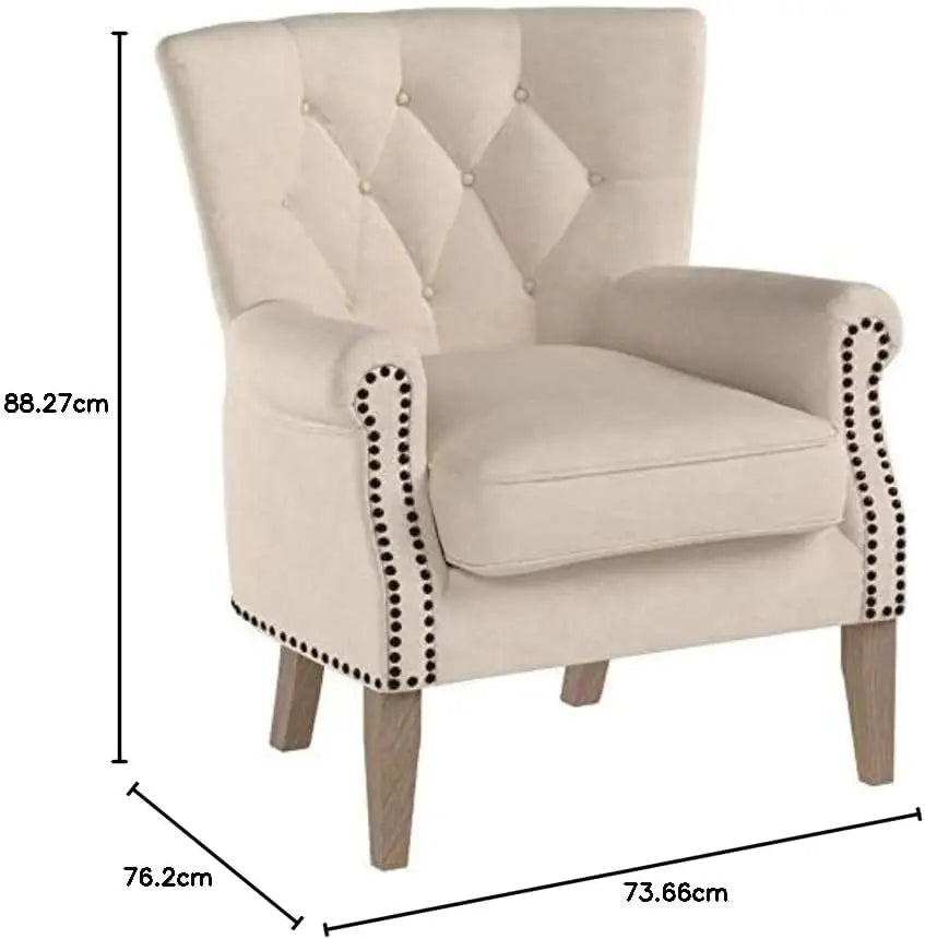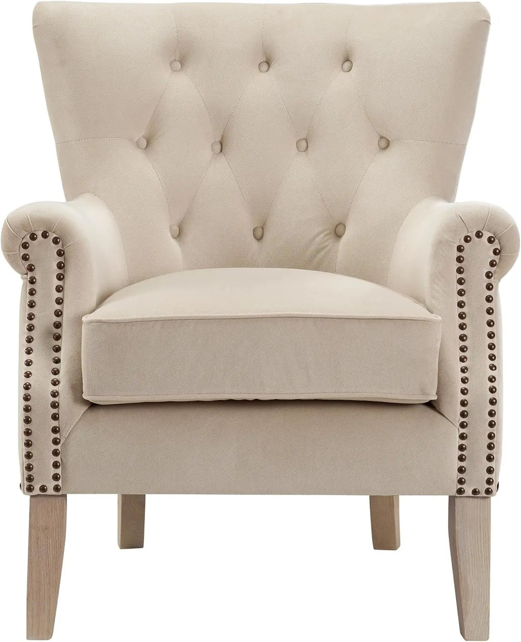 Mid-Century Modern Channel Back Accent Tufted Arm Chair, with Solid Wood Legs With a Rustic Finish. Beige color