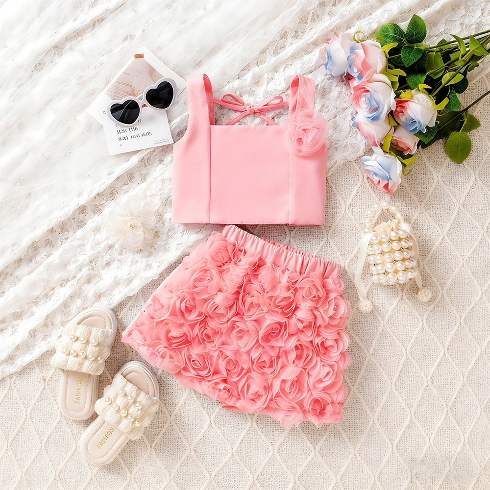Strapless Crop Top Rose Petal Shorts Two-piece Set